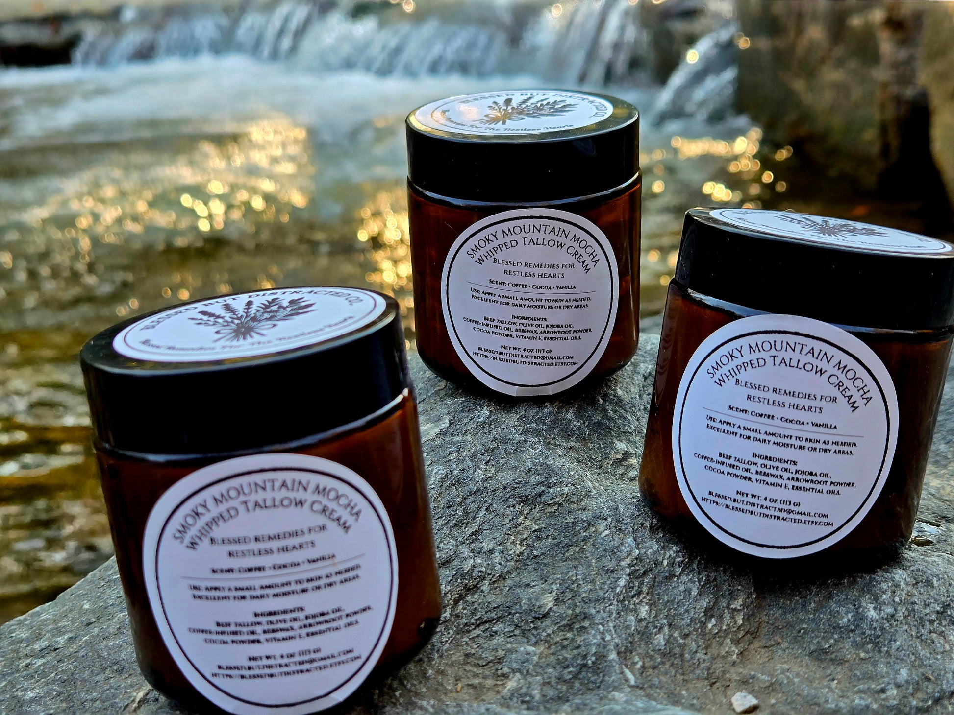 Bring the calm of the Smoky Mountains to your daily routine. Our Smoky Mountain Mocha Whipped Tallow Cream is slow-crafted in small batches with pure, grass-fed beef tallow and blended with coffee-infused oil, a touch of cocoa powder, vanilla, and vitamin E. The result is a decadent, mocha-scented cream that feels as comforting as a warm mug on a cool mountain morning.