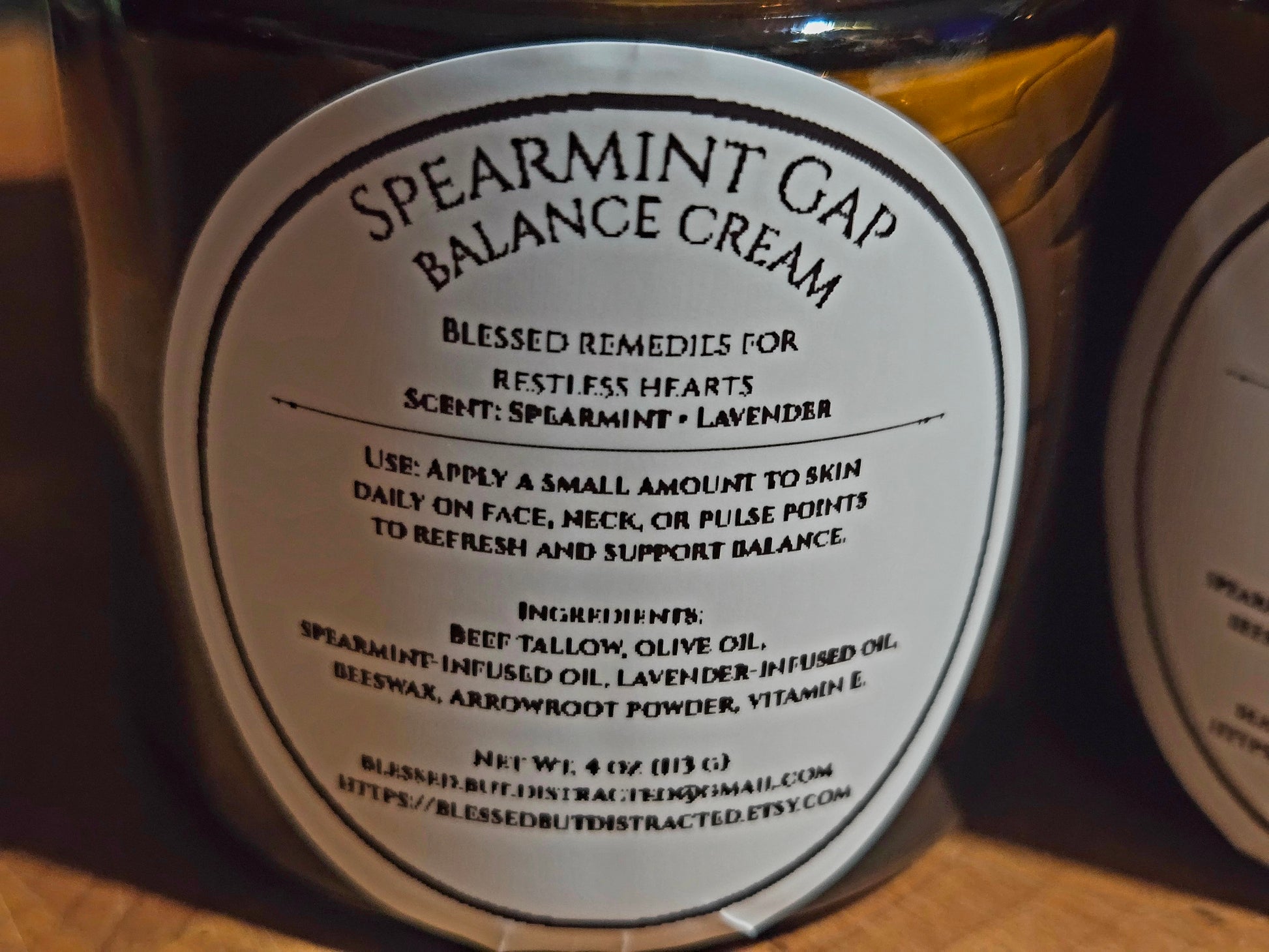 Created with women’s wellness in mind, our Spearmint Gap Balance Cream is a soothing, whipped blend inspired by those looking to support their natural balance through life’s changes. Handcrafted in small batches with pure grass-fed tallow, spearmint-infused oil, and vitamin E, this gentle formula offers a refreshing, cooling feel that leaves skin soft and calm.