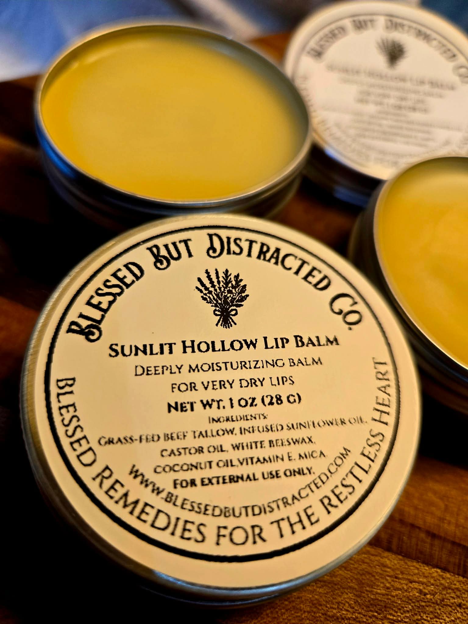 Sunlit Hollow Lip Balm | Botanical Tallow Lip Care with Calendula & Chamomile